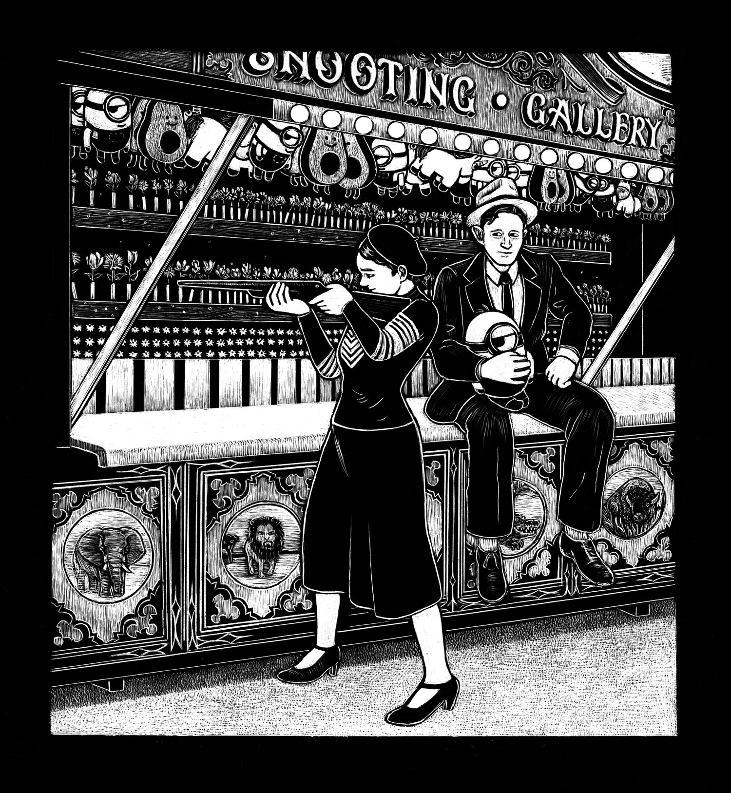 1-farbiger Siebdruck (Weiß) auf schwarzem Karton (250 g/m²) im Format 23 x 25 cm (9" x 9.8").