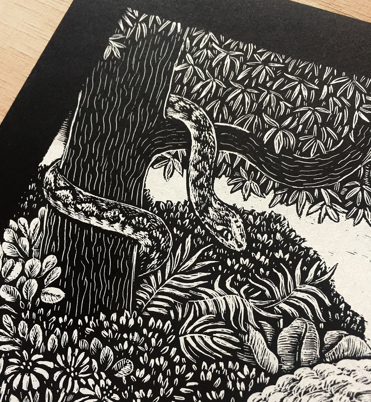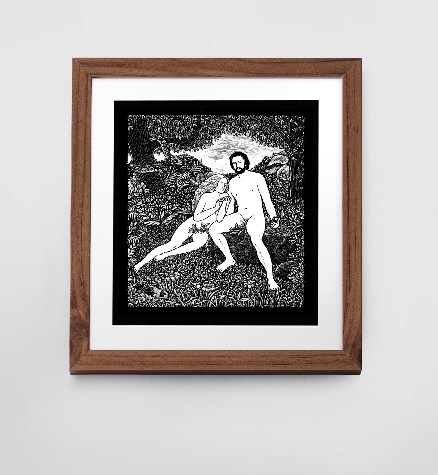 1-farbiger Siebdruck (Weiß) auf schwarzem Karton (250 g/m²) im Format 23 x 25 cm (9" x 9.8").