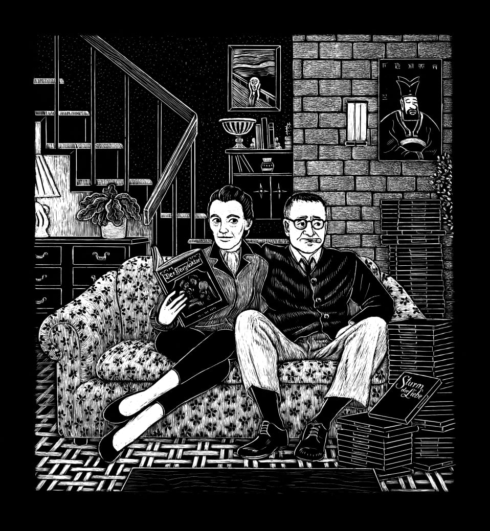 1-farbiger Siebdruck (Weiß) auf schwarzem Karton (250 g/m²) im Format 23 x 25 cm (9" x 9.8").