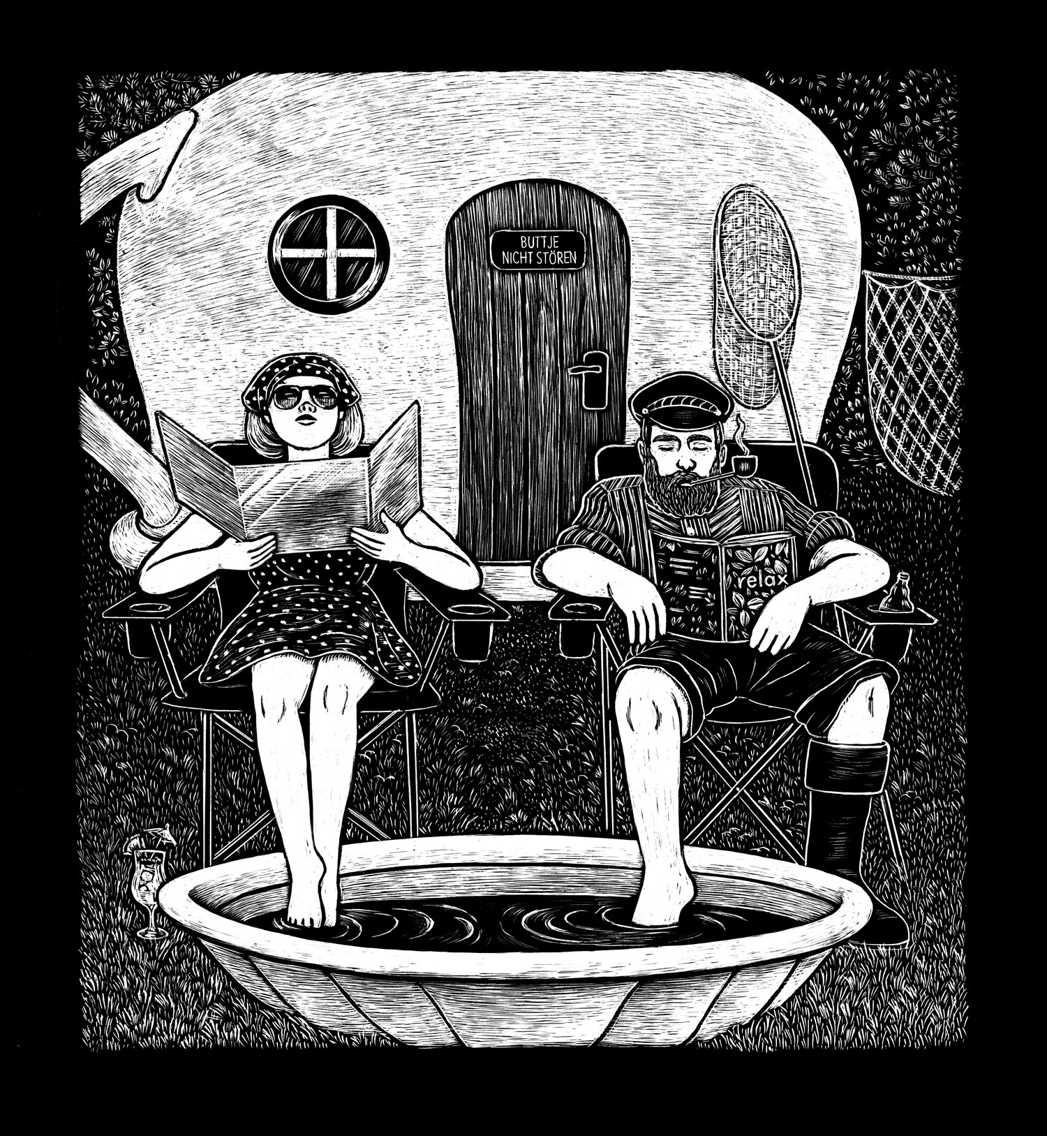 1-farbiger Siebdruck (Weiß) auf schwarzem Karton (250 g/m²) im Format 23 x 25 cm (9" x 9.8").