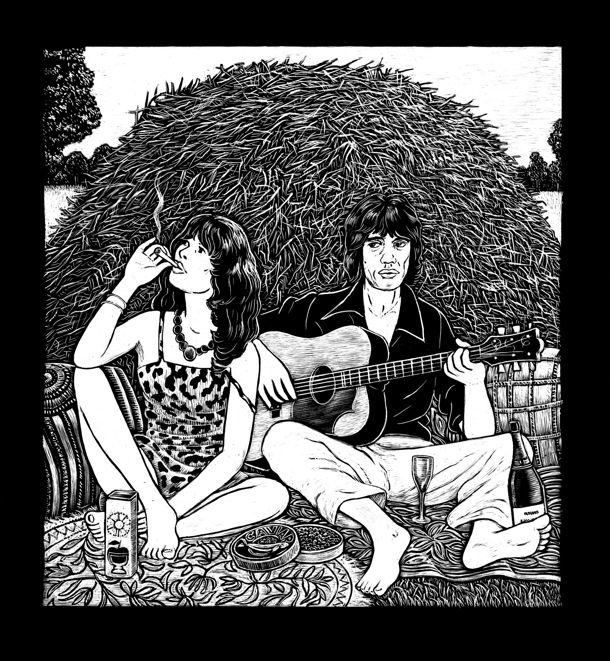 1-farbiger Siebdruck (Weiß) auf schwarzem Karton (250 g/m²) im Format 23 x 25 cm (9" x 9.8").